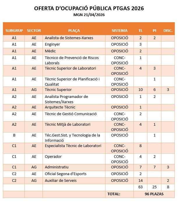 abril 27, 2026Oferta d’Ocupació del PTGAS 2026